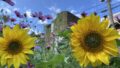 ブーゲンビリアの鮮やかな紫色が沖縄の空の青によく映えていて、