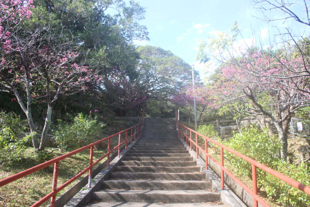 公園入り口の階段。両側の桜並木がお出迎えしています。